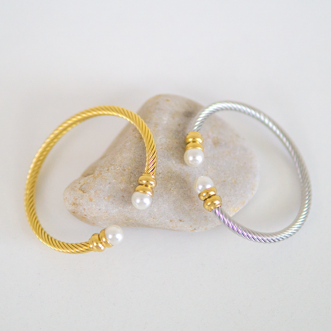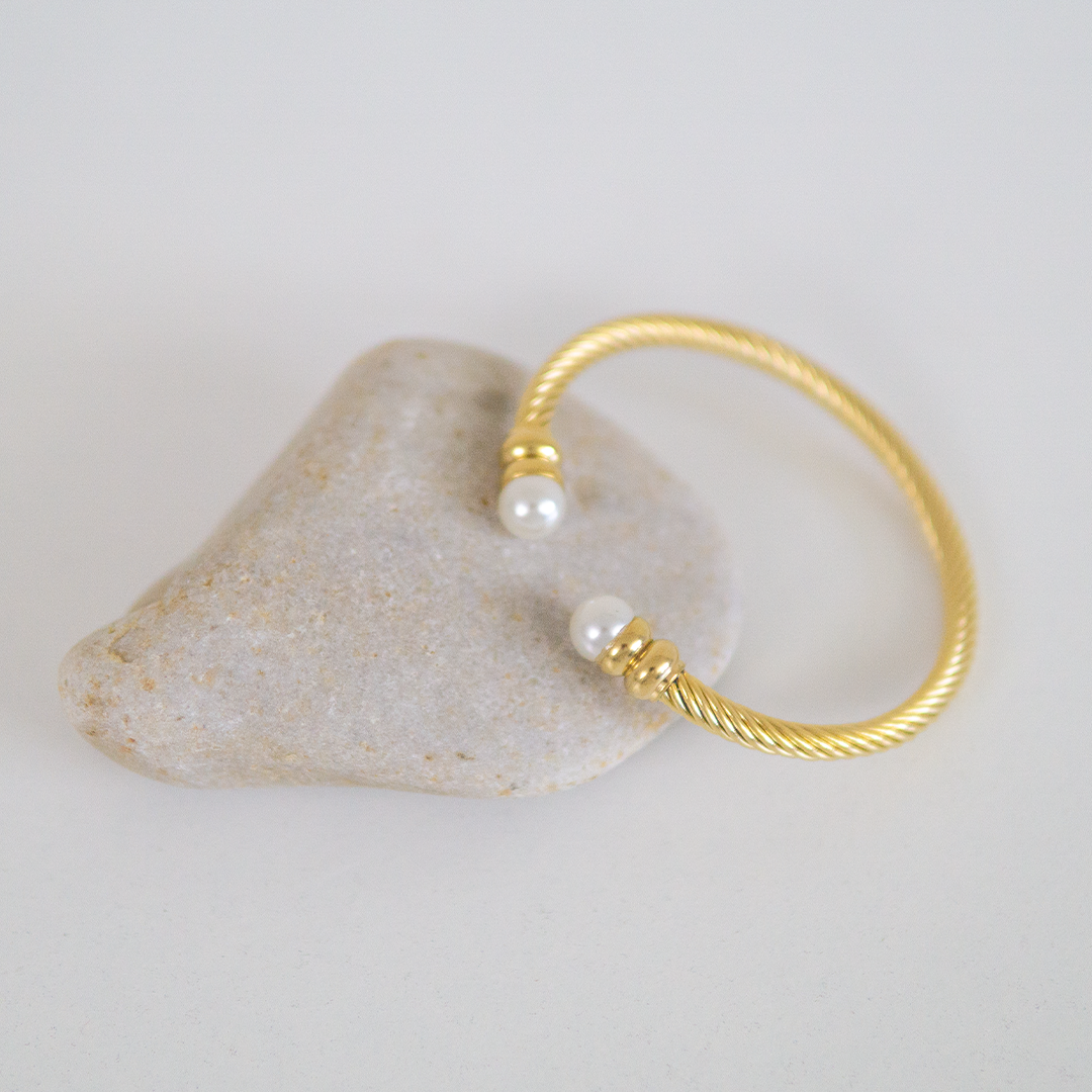 Mila Pearl Bangle - Stainless Steel Gold Plated 18k